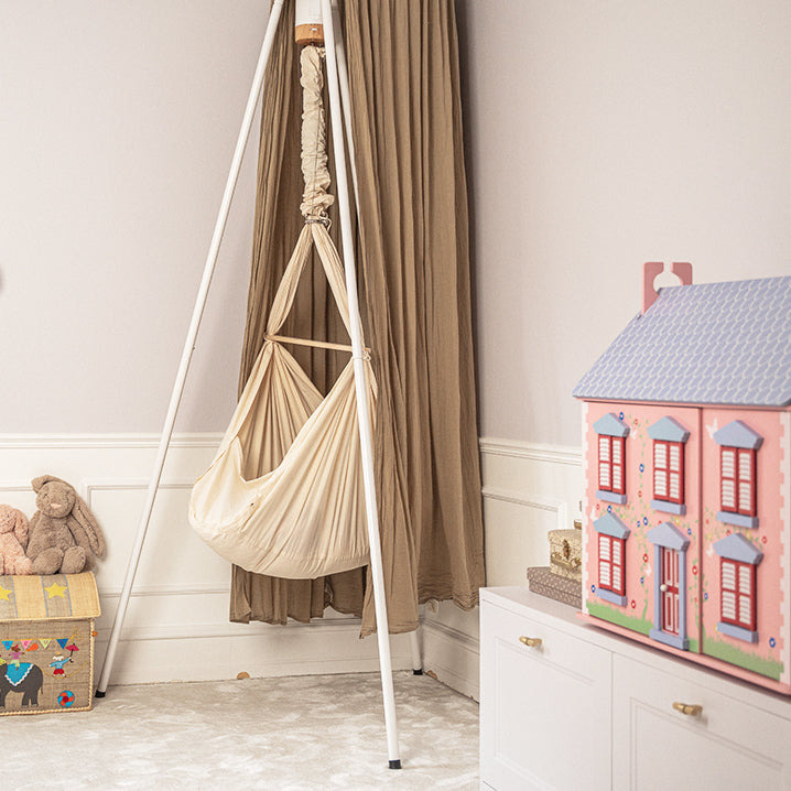 Med vårt hängvagga-paket får du allt du behöver för att komma igång med att använda en hängvagga för att optimera ditt barns sömn. Detta inkluderar vaggan, stativ, vaggmotor, madrass och nödvändig utrustning.